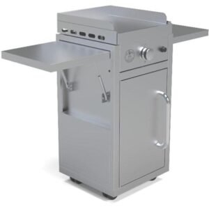 Achieve consistent heat distribution with the 1/2 inch enameled cast iron sub-plate. Cook your favorite foods with ease thanks to the 1800W heating element. Enjoy the versatility of indoor or outdoor use with no open flame. The portable cart includes folding side shelves and an enclosed cabinet for convenient storage. The Le Griddle propane gas…