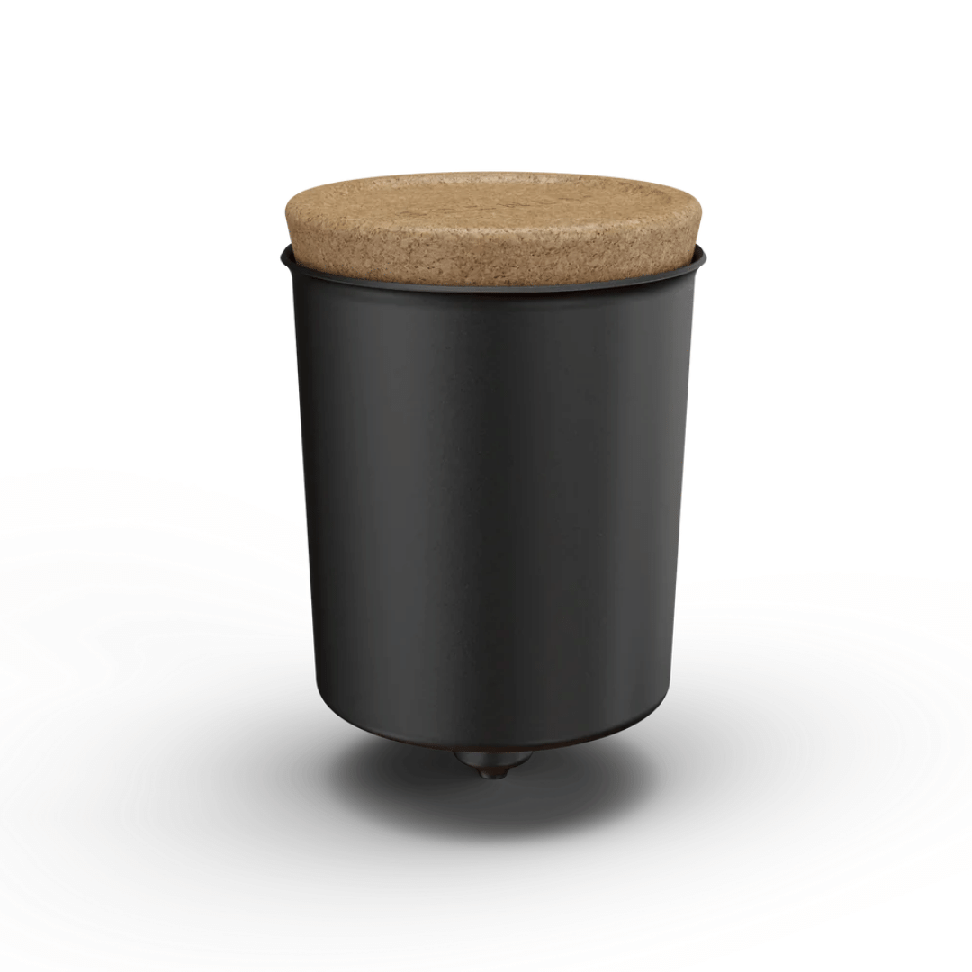 A black anodized aluminum funnel with a cork top, engineered with precision to inject just the right amount of water into the oven and create steam on entry.