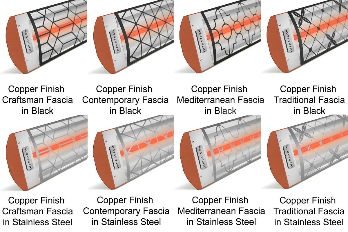 - Incredible Style Solutions. Choose the color of your Infratech C Series from brushed stainless steel, standard colors, or custom color finish options. Upgrade your unit with the Motif collection of decorative, laser-cut metal fascias.
