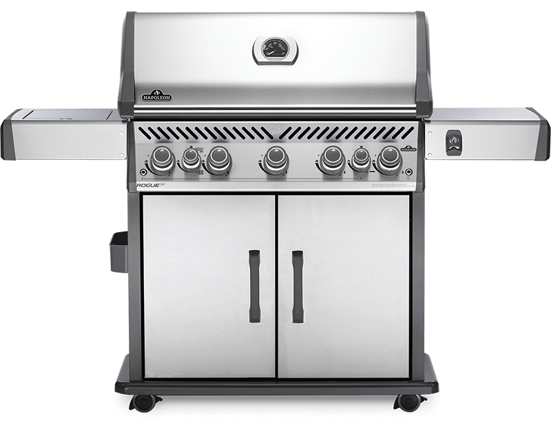 Elevate your grilling experience with the Napoleon Rogue® SE 625 Stainless Steel Napoleon Gas Grill. Crafted from durable stainless steel, it boasts five main burners, a rear rotisserie burner, and a high-top lid. Achieve restaurant-quality searing with the integrated sear station and enjoy ample prep space on generous side shelves. Take your grilling to the next level!